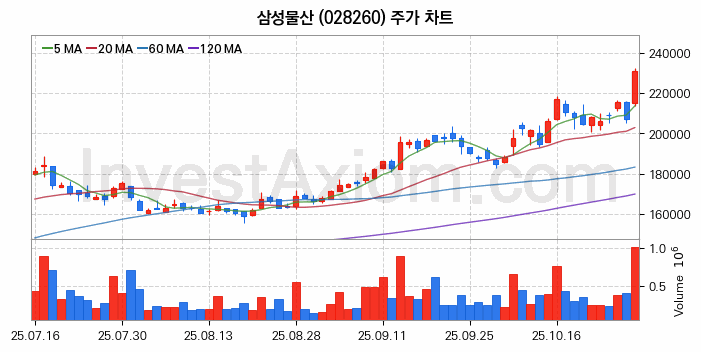 삼성물산 주가 전망 분석, 주식 차트 분석과 기간 수익률 및 주가 변동성 분석 (25년10월29일)