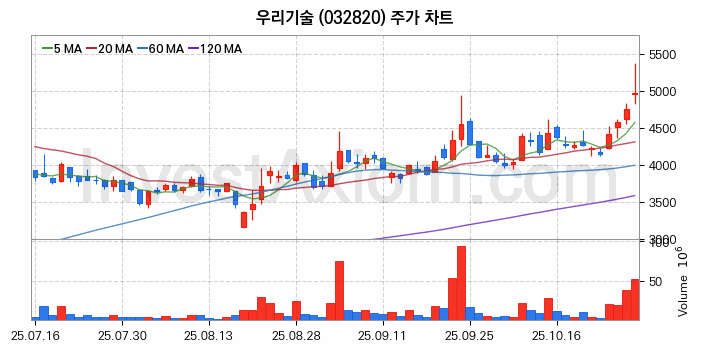 우리기술 주가 전망 분석, 주식 차트 분석과 기간 수익률 및 주가 변동성 분석 (25년10월29일)