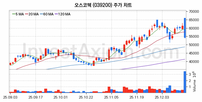 오스코텍 주가 전망 분석, 주식 차트 분석과 기간 수익률 및 주가 변동성 분석 (25년12월16일)