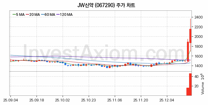 JW신약 주가 전망 분석, 주식 차트 분석과 기간 수익률 및 주가 변동성 분석 (25년12월17일)