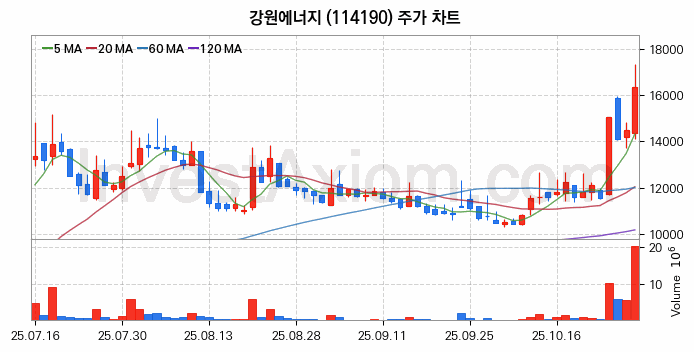 강원에너지 주가 전망 분석, 주식 차트 분석과 기간 수익률 및 주가 변동성 분석 (25년10월29일)