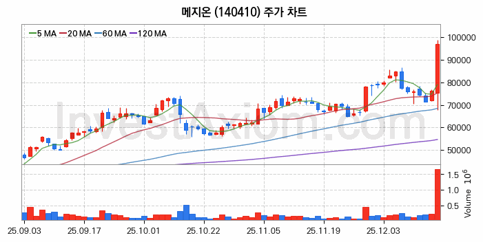 메지온 주가 전망 분석, 주식 차트 분석과 기간 수익률 및 주가 변동성 분석 (25년12월16일)