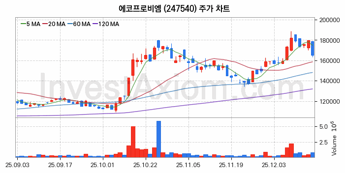 에코프로비엠 주가 전망 분석, 주식 차트 분석과 기간 수익률 및 주가 변동성 분석 (25년12월16일)