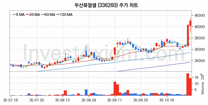 두산퓨얼셀 주가 전망 분석, 주식 차트 분석과 기간 수익률 및 주가 변동성 분석 (25년10월29일)