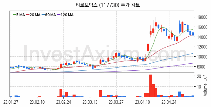 티로보틱스 주가 전망 분석, 주식 차트 분석과 기간 수익률 및 주가 변동성 분석 (23년08월17일)