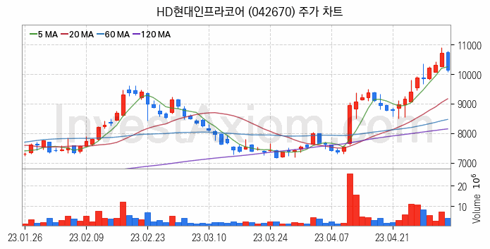 현대엘리베이 주가 전망 분석, 주식 차트 분석과 기간 수익률 및 주가 변동성 분석 (23년08월10일)