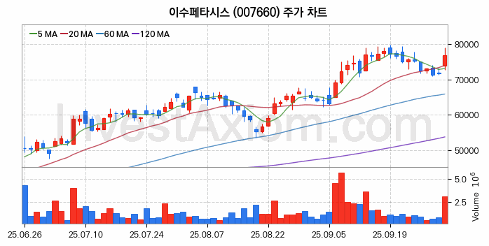 이수페타시스 주가 전망 분석, 주식 차트 분석과 기간 수익률 및 주가 변동성 분석 (25년10월02일)
