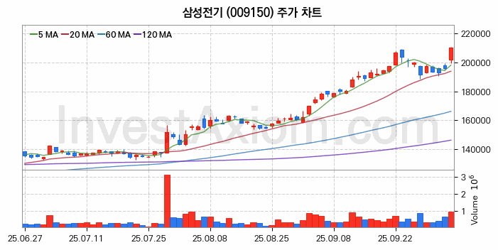 삼성전기 주가 전망 분석, 주식 차트 분석과 기간 수익률 및 주가 변동성 분석 (25년10월10일)
