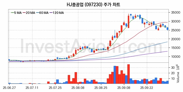 HJ중공업 주가 전망 분석, 주식 차트 분석과 기간 수익률 및 주가 변동성 분석 (25년10월10일)