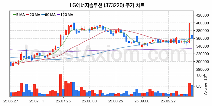 LG에너지솔루션 주가 전망 분석, 주식 차트 분석과 기간 수익률 및 주가 변동성 분석 (25년10월10일)