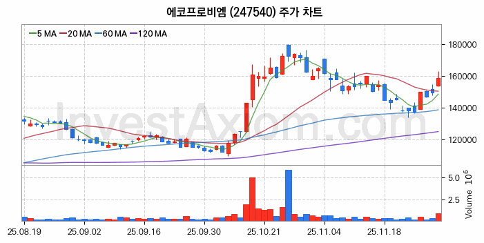 에코프로비엠 주가 전망 분석, 주식 차트 분석과 기간 수익률 및 주가 변동성 분석 (25년12월01일)