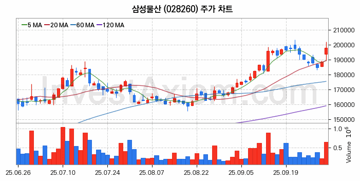 삼성물산 주가 전망 분석, 주식 차트 분석과 기간 수익률 및 주가 변동성 분석 (25년10월02일)