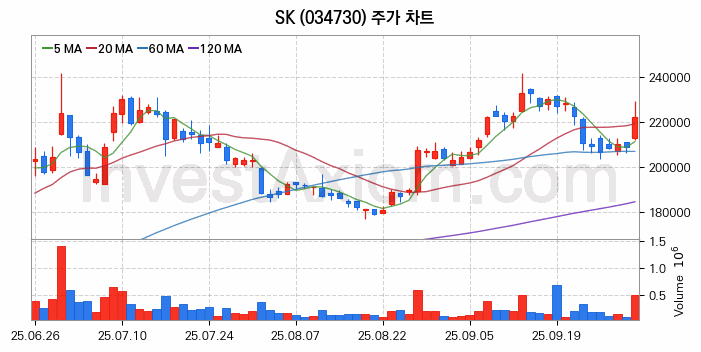 SK 주가 전망 분석, 주식 차트 분석과 기간 수익률 및 주가 변동성 분석 (25년10월02일)