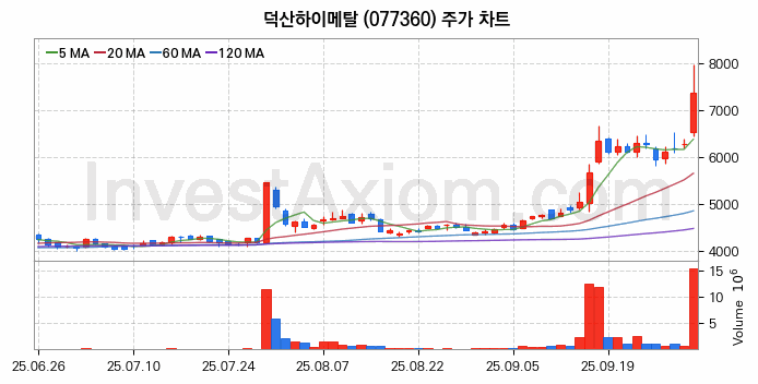 덕산하이메탈 주가 전망 분석, 주식 차트 분석과 기간 수익률 및 주가 변동성 분석 (25년10월02일)