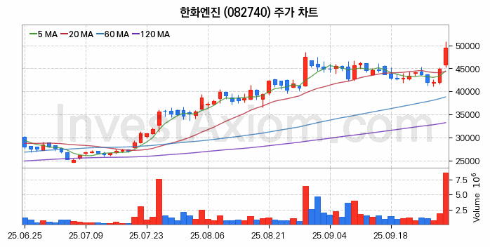 한화엔진 주가 전망 분석, 주식 차트 분석과 기간 수익률 및 주가 변동성 분석 (25년10월01일)