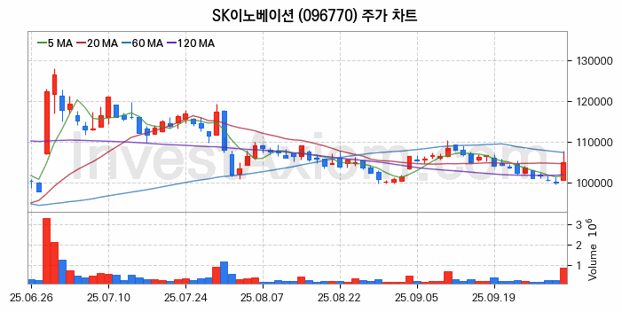 SK이노베이션 주가 전망 분석, 주식 차트 분석과 기간 수익률 및 주가 변동성 분석 (25년10월02일)