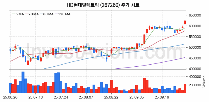 HD현대일렉트릭 주가 전망 분석, 주식 차트 분석과 기간 수익률 및 주가 변동성 분석 (25년10월02일)