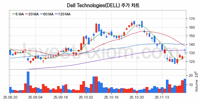 미국 주식 분석, Dell Technologies (델테크놀로지 Class C) 주가 차트 분석과 주식 기간 수익률 및 변동성 분석 (2025-11-26)