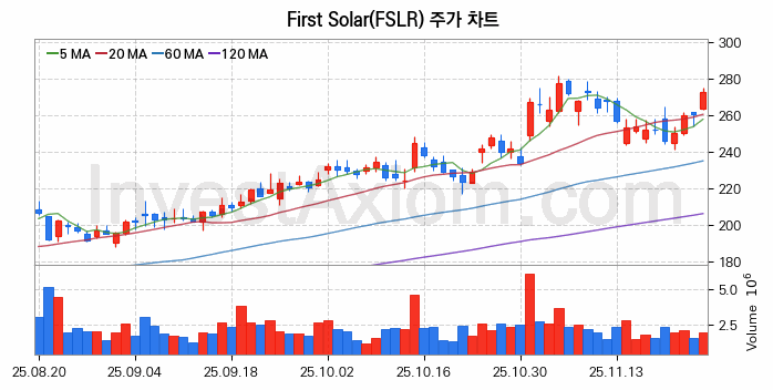 미국 주식 분석, First Solar (퍼스트 솔라) 주가 차트 분석과 주식 기간 수익률 및 변동성 분석 (2025-11-26)