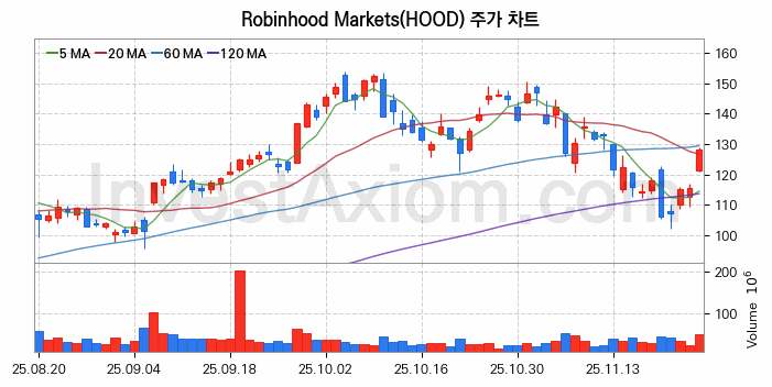 미국 주식 분석, Robinhood Markets (로빈후드 마켓츠 Class A) 주가 차트 분석과 주식 기간 수익률 및 변동성 분석 (2025-11-26)