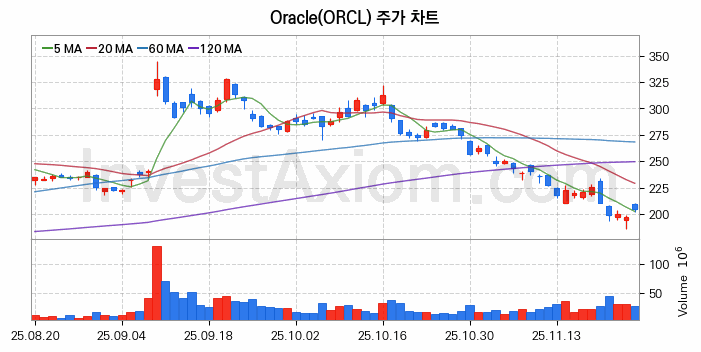 미국 주식 분석, Oracle (오라클) 주가 차트 분석과 주식 기간 수익률 및 변동성 분석 (2025-11-26)