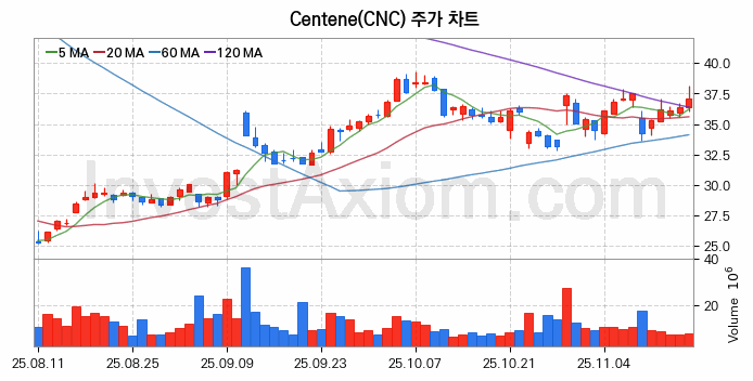 미국 주식 분석, Centene (센틴) 주가 차트 분석과 주식 기간 수익률 및 변동성 분석 (2025-11-17)