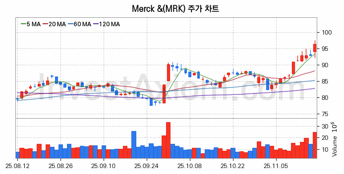 미국 주식 분석, Merck & (머크 앤 코) 주가 차트 분석과 주식 기간 수익률 및 변동성 분석 (2025-11-18)