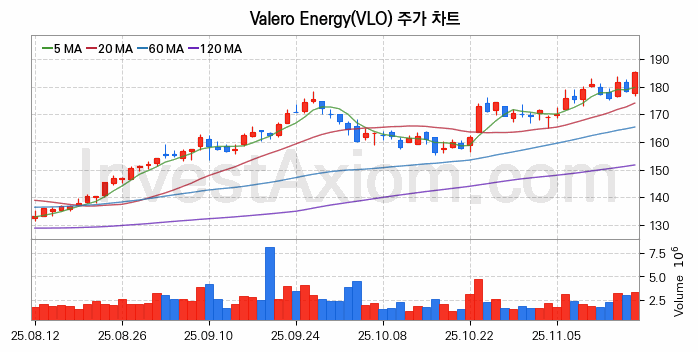 미국 주식 분석, Valero Energy (발레로 에너지) 주가 차트 분석과 주식 기간 수익률 및 변동성 분석 (2025-11-18)
