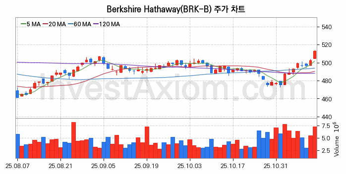 미국 주식 분석, Berkshire Hathaway (버크셔 해서웨이 Class B) 주가 차트 분석과 주식 기간 수익률 및 변동성 분석 (2025-11-13)
