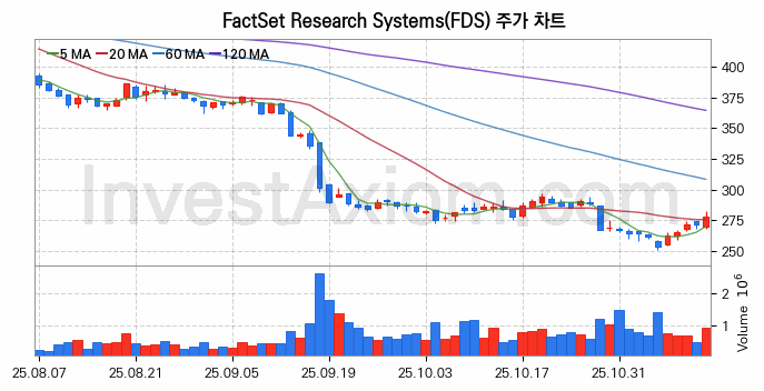 미국 주식 분석, FactSet Research Systems (팩트셋 리서치 시스템즈) 주가 차트 분석과 주식 기간 수익률 및 변동성 분석 (2025-11-13)