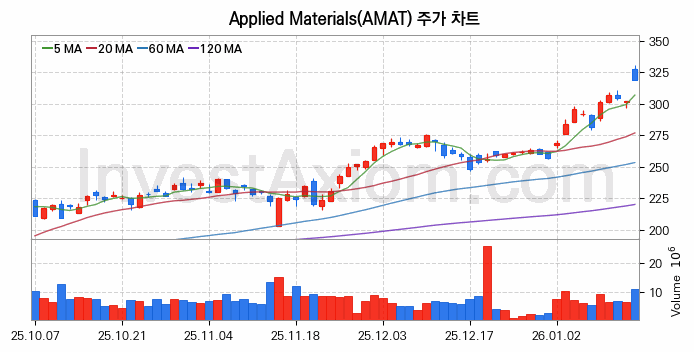 미국 주식 분석, Applied Materials (어플라이드 머티어리얼즈) 주가 차트 분석과 주식 기간 수익률 및 변동성 분석 (2026-01-15)