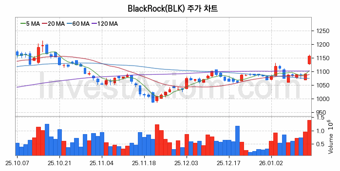 미국 주식 분석, BlackRock (블랙록) 주가 차트 분석과 주식 기간 수익률 및 변동성 분석 (2026-01-15)