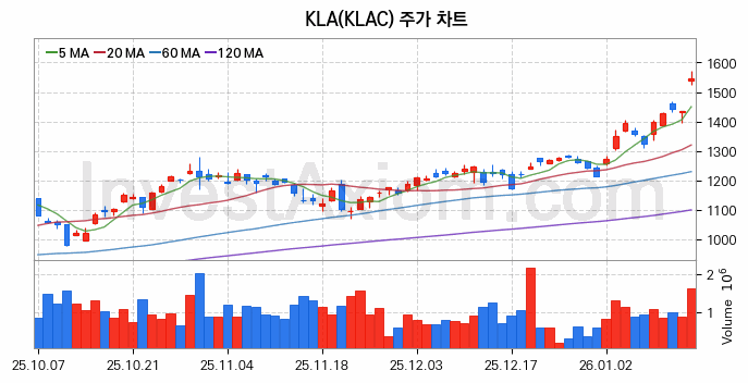 미국 주식 분석, KLA 주가 차트 분석과 주식 기간 수익률 및 변동성 분석 (2026-01-15)