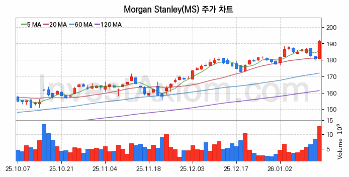 미국 주식 분석, Morgan Stanley (모간스탠리) 주가 차트 분석과 주식 기간 수익률 및 변동성 분석 (2026-01-15)