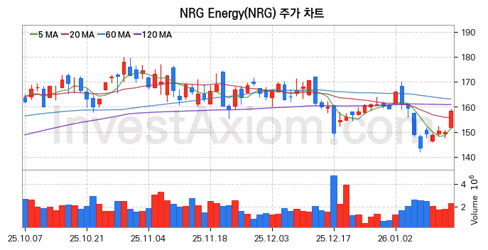 미국 주식 분석, NRG Energy (NRG 에너지) 주가 차트 분석과 주식 기간 수익률 및 변동성 분석 (2026-01-15)