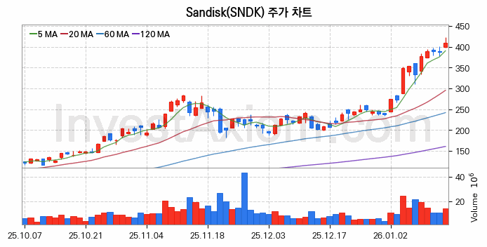 미국 주식 분석, Sandisk (샌디스크) 주가 차트 분석과 주식 기간 수익률 및 변동성 분석 (2026-01-15)