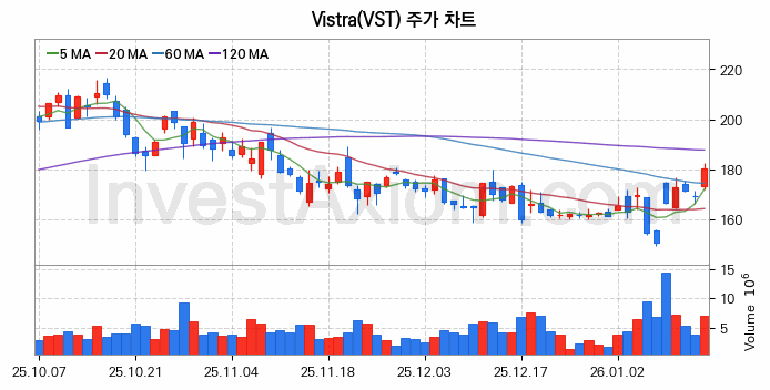 미국 주식 분석, Vistra (비스트라 에너지) 주가 차트 분석과 주식 기간 수익률 및 변동성 분석 (2026-01-15)