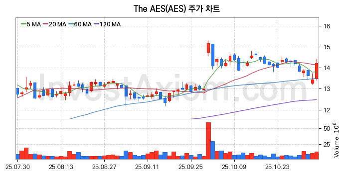 미국 주식 분석, The AES (AES 코퍼레이션) 주가 차트 분석과 주식 기간 수익률 및 변동성 분석 (2025-11-05)