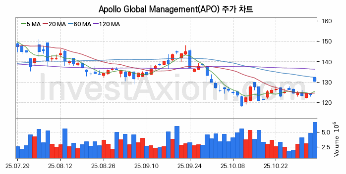 미국 주식 분석, Apollo Global Management (아폴로 글로벌 매니지먼트) 주가 차트 분석과 주식 기간 수익률 및 변동성 분석 (2025-11-04)