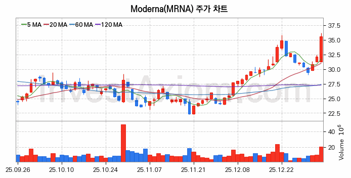 미국 주식 분석, Moderna (모더나) 주가 차트 분석과 주식 기간 수익률 및 변동성 분석 (2026-01-06)