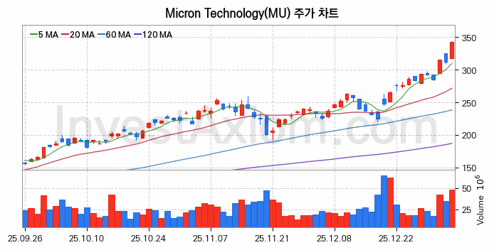 미국 주식 분석, Micron Technology (마이크론 테크놀로지) 주가 차트 분석과 주식 기간 수익률 및 변동성 분석 (2026-01-06)