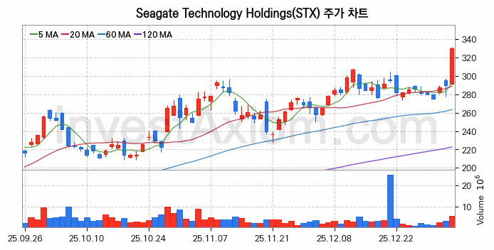 미국 주식 분석, Seagate Technology Holdings (STX) 주가 차트 분석과 주식 기간 수익률 및 변동성 분석 (2026-01-06)