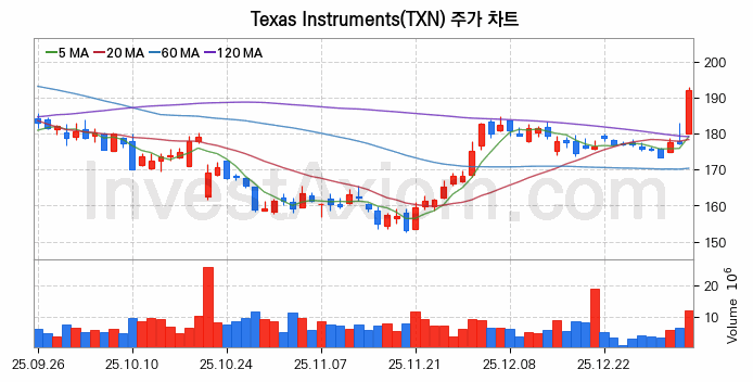 미국 주식 분석, Texas Instruments (텍사스 인스트루먼트) 주가 차트 분석과 주식 기간 수익률 및 변동성 분석 (2026-01-06)