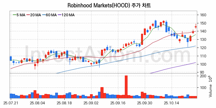 미국 주식 분석, Robinhood Markets (로빈후드 마켓츠 Class A) 주가 차트 분석과 주식 기간 수익률 및 변동성 분석 (2025-10-27)