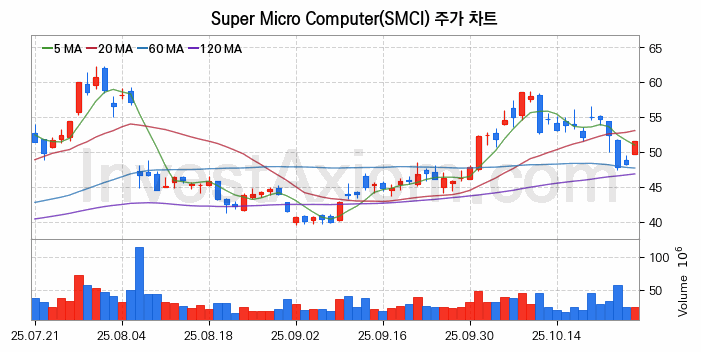 미국 주식 분석, Super Micro Computer (슈퍼 마이크로 컴퓨터) 주가 차트 분석과 주식 기간 수익률 및 변동성 분석 (2025-10-27)