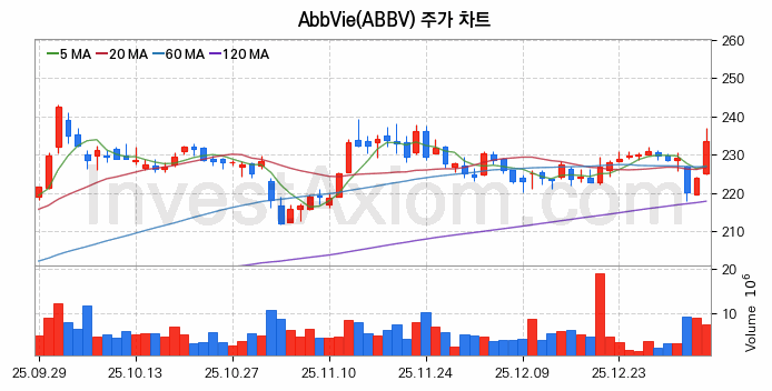 미국 주식 분석, AbbVie (애브비) 주가 차트 분석과 주식 기간 수익률 및 변동성 분석 (2026-01-07)