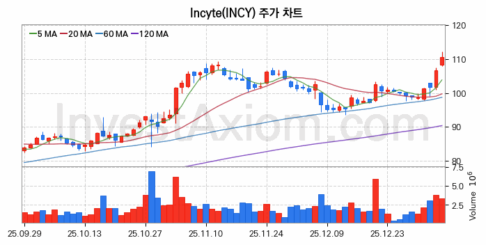 미국 주식 분석, Incyte (인사이트) 주가 차트 분석과 주식 기간 수익률 및 변동성 분석 (2026-01-07)