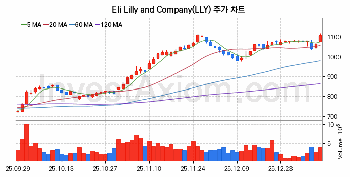 미국 주식 분석, Eli Lilly and Company (일라이 릴리) 주가 차트 분석과 주식 기간 수익률 및 변동성 분석 (2026-01-07)
