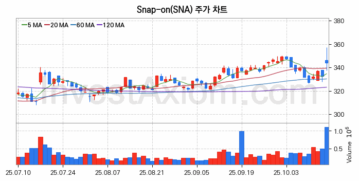 미국 주식 분석, Snap-on (스냅-온) 주가 차트 분석과 주식 기간 수익률 및 변동성 분석 (2025-10-16)