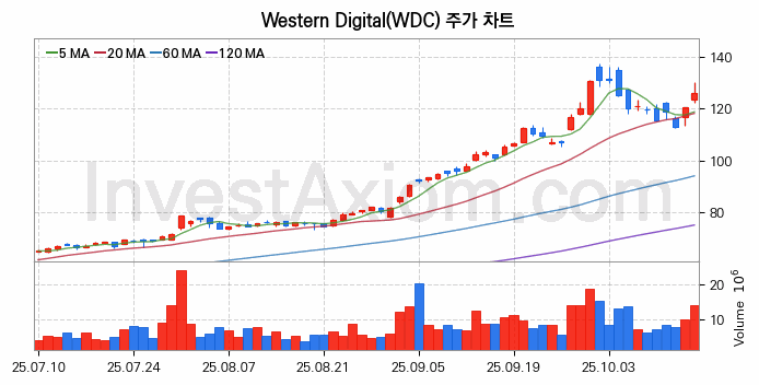 미국 주식 분석, Western Digital (웨스턴 디지털) 주가 차트 분석과 주식 기간 수익률 및 변동성 분석 (2025-10-16)